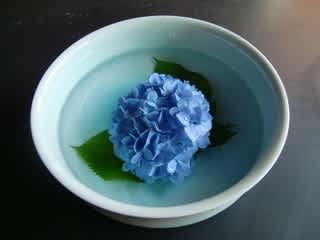 昨日頂いた紫陽花を青磁の鉢に入れて遊んでみた。お花に霧吹きでシュシュ水をかける。こうしておくと結構長い期間楽しめる!