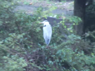 レンズを通すと青い羽根が見える。青鷺のようだ! 夕食終わって一休みしているのだろうか?遠いけど目の前に止まっている・・・感激!・・写真を撮っている間に元気が出てきた。