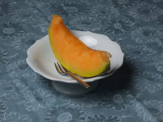 さて、私も夕食の支度だ。今夜は、頑張っている自分達へのご褒美・・・北国から届いた頂き物の「夕張メロン」を切ってみる。甘くて、美味しそう!