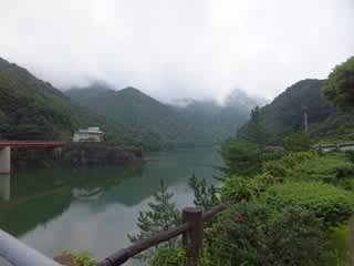 眼下には 治水と飲用水を兼ねた竜門ダムが 静かな山々に囲まれている。