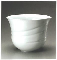 「青白磁彫花器」で 一本の線が無数に広がって行く様を 表現した作品です。