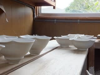 今日は 日曜だけど 我が家は 今日も ろくろがまわる。硬くならないうちに削りを入れなければならない。