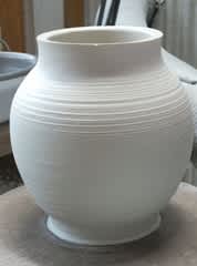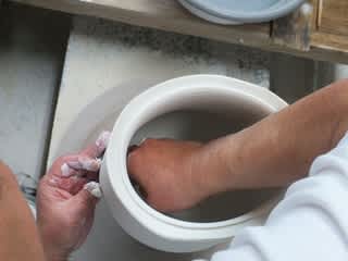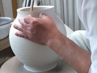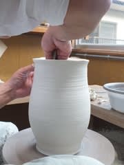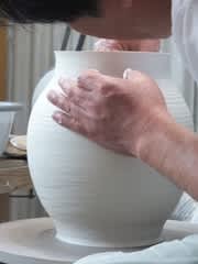 次に 口を薄くのばしながら 小さく絞っていきます。