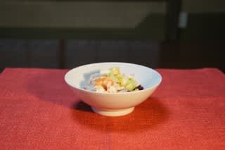 シンプルな小鉢に 衣装を替えた 海鮮サラダ