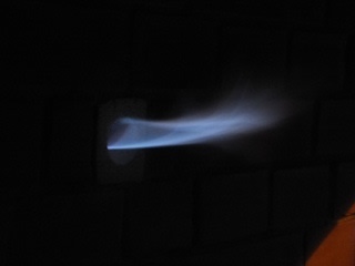 還元の炎が 窯の吹き出し口から 出ている様子です。