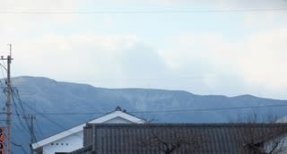 遠くの山々が 薄い真白いベールでおおわれています。