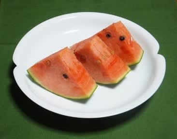 瑞々しい果汁と共に よく熟した真っ赤なスイカが現れて