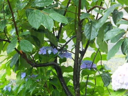 ろくろ場の窓から見える ガクアジサイも