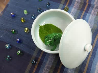 カエルの親子も ちょっと雨宿り