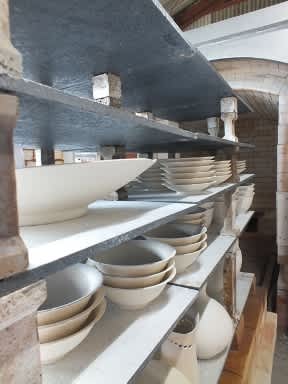 こちら工房は 来月の個展に向けて 素焼き入れ