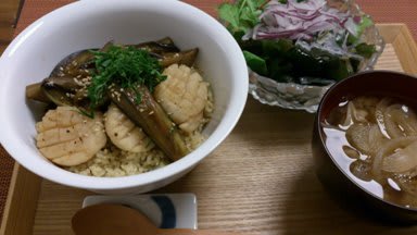 今日は 東京のMさんから ホタテ丼の夕飯メニューが