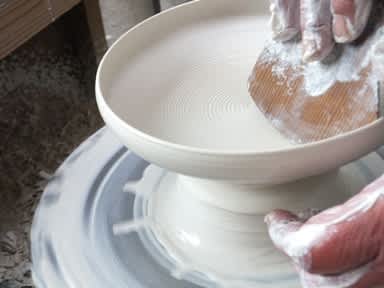 轆轤が回り 夫は一生懸命 お皿づくり