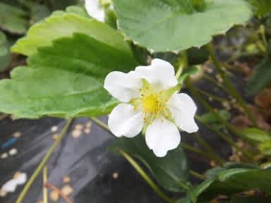 不思議な事に 真っ赤な実のなる イチゴの花は 真っ白い花