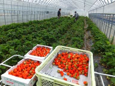 エッちゃんとご主人とで 丹精込めて育てているイチゴ園
