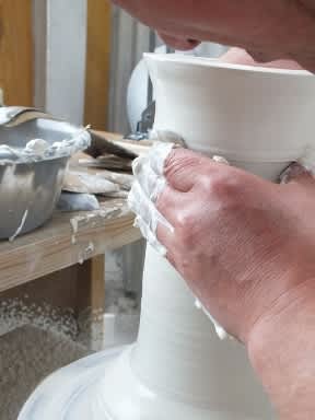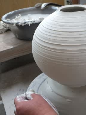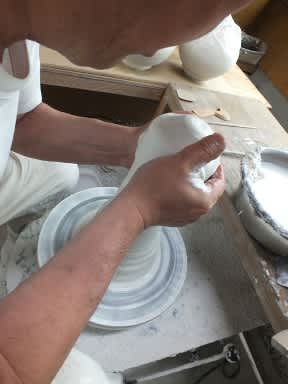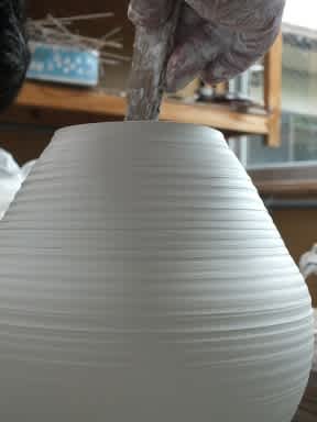 さてさて 雨音を聞きながら 本日も轆轤の前で 制作です