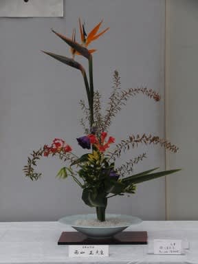 夫の青磁の鉢には 池坊の先生の 立華が活けられました
