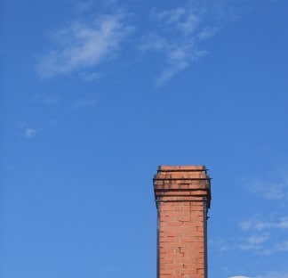 さて 今日は 秋空に スクッとそびえる 煙突の下では
