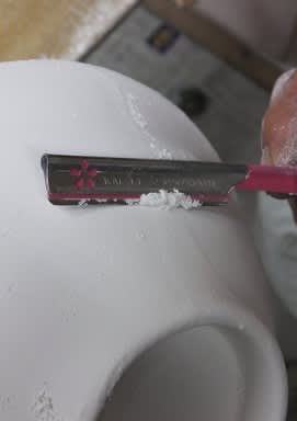 釉薬の流れたあとの でこぼこを 丁寧に 平らになるように