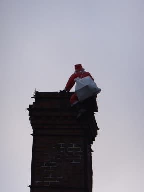 夕暮れ時 町のあちこちに サンタさんの姿が