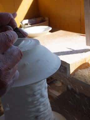 クルクルと 削り粉が 舞い踊るろくろ場の