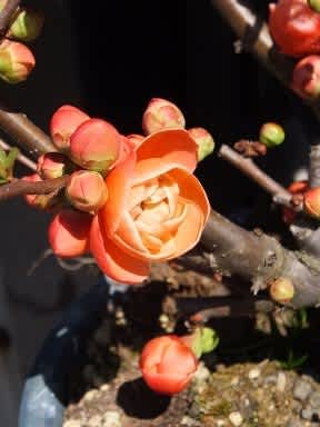 今年も 我が家の小さな鉢植えの 木瓜の花が 咲きました
