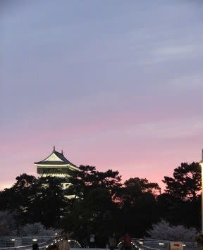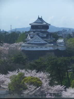 周囲を 美しい桜の花々に 囲まれた小倉城に迎えられました