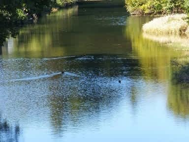近くの川で スイスイ カモの泳ぎに見とれたり