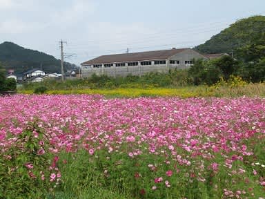 会場の奥に広がる 秋桜の前で 一緒に写真を撮りました
