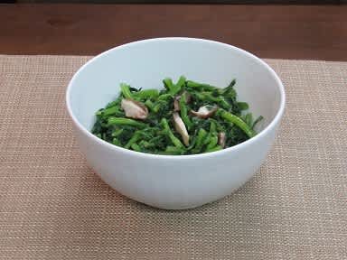 シイタケと一緒に湯がいて 塩コショウ ごま油 お醤油 少々ずつ入れて