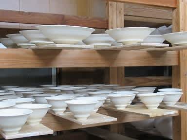 早朝 夫は 心配そうに 棚にのった作り立ての小鉢や お皿を 点検していました