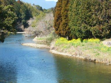 近くの川沿いには 菜の花が 春の光をいっぱいに浴びています