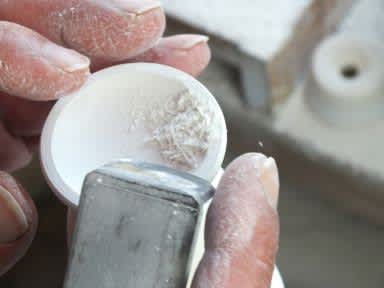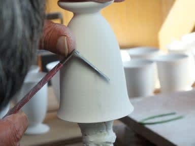 先ずは 杯を逆さまにして 高台から 削り始めます