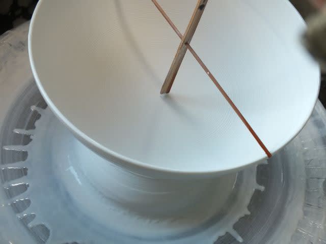 夫は 大慌てで ストーブを消しに 工房へ・・