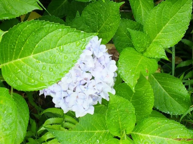 雨の中で 紫陽花がきらきら 輝いて 目に鮮やかです