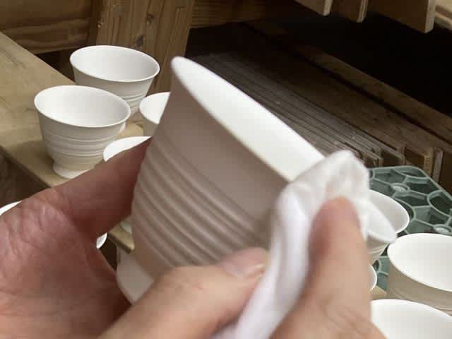 薄く線彫りされた 白磁の小さなお碗を求められました
