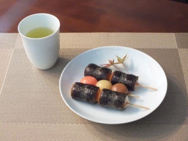 佐賀のノリで巻いたというお団子と