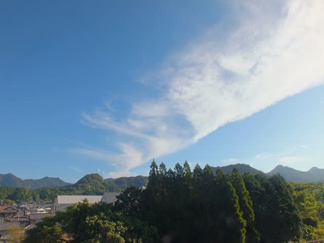 筆で書きなぐったような 面白い雲が 秋空に浮かんでいます