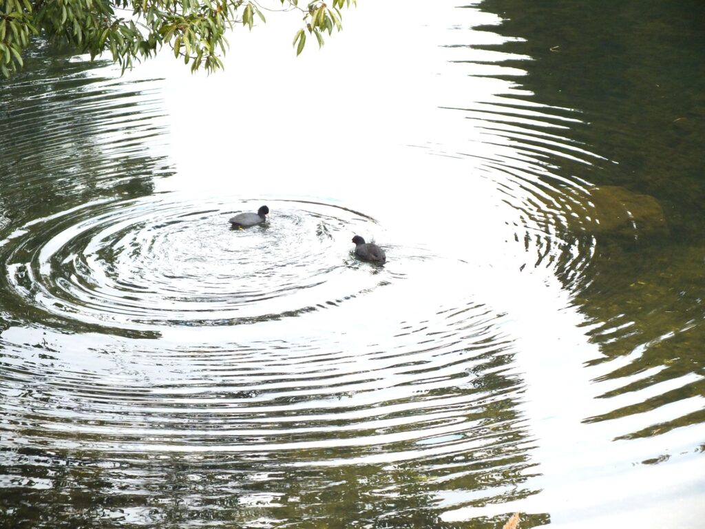 すでに 氷は解けて 川に遊ぶカモたちが 気持ちよさそうでした